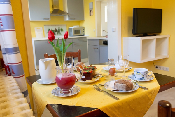 Die Ferienhäuser sind alle individuell eingerichtet, mit 1 oder 2 Schlafzimmern, Wohnzimmer, Küche ( einige mit Geschirrspüler, alle mit Kaffemaschine, Wasserkocher, Toaster und allem, was man zum Kochen braucht. )